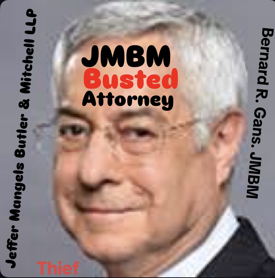 Suing JMBM partner $500,000,000,000.00 Busted criminal attorneys Jeffer Mangels Butler & Mitchell LLP lawyer Bernard Reginald Gans #57068 Bernard Gans Mina Sirkin law group JMBM killed my mom to get her fortune.