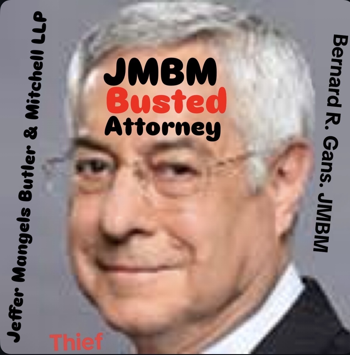 Suing JMBM partner $500,000,000,000.00 Busted criminal attorneys Jeffer Mangels Butler & Mitchell LLP lawyer Bernard Reginald Gans #57068 Bernard Gans Mina Sirkin law group JMBM killed my mom to get her fortune. |